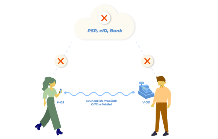 Digital payments are vulnerable to online connection issues as well as potential downtime of the payment services provider, bank or electronic identification service. Crunchfish has announced a patent pending ground-breaking innovation where mobile payments are made independent of any and all online connection issues as well as any and all cloud services down-time problems at the moment-of-payment. To facilitate an in-store payment transaction where neither the customer nor the merchant is connected to its payment service, it is necessary to establish a local two-way connection between the customer and merchant. This is accomplished by Crunchfish Proxilink Offline Wallet.